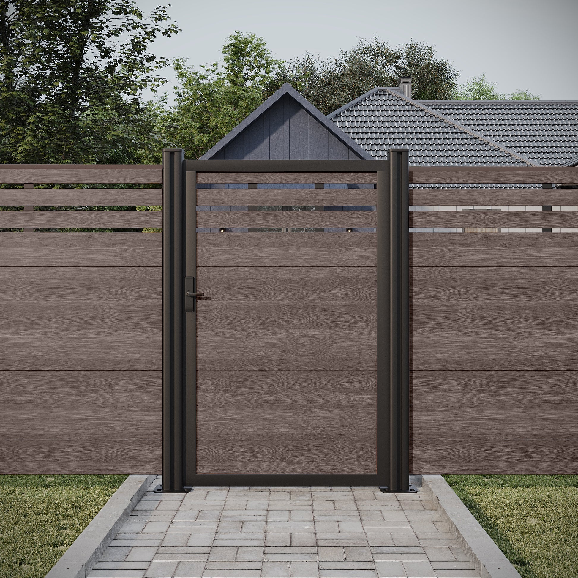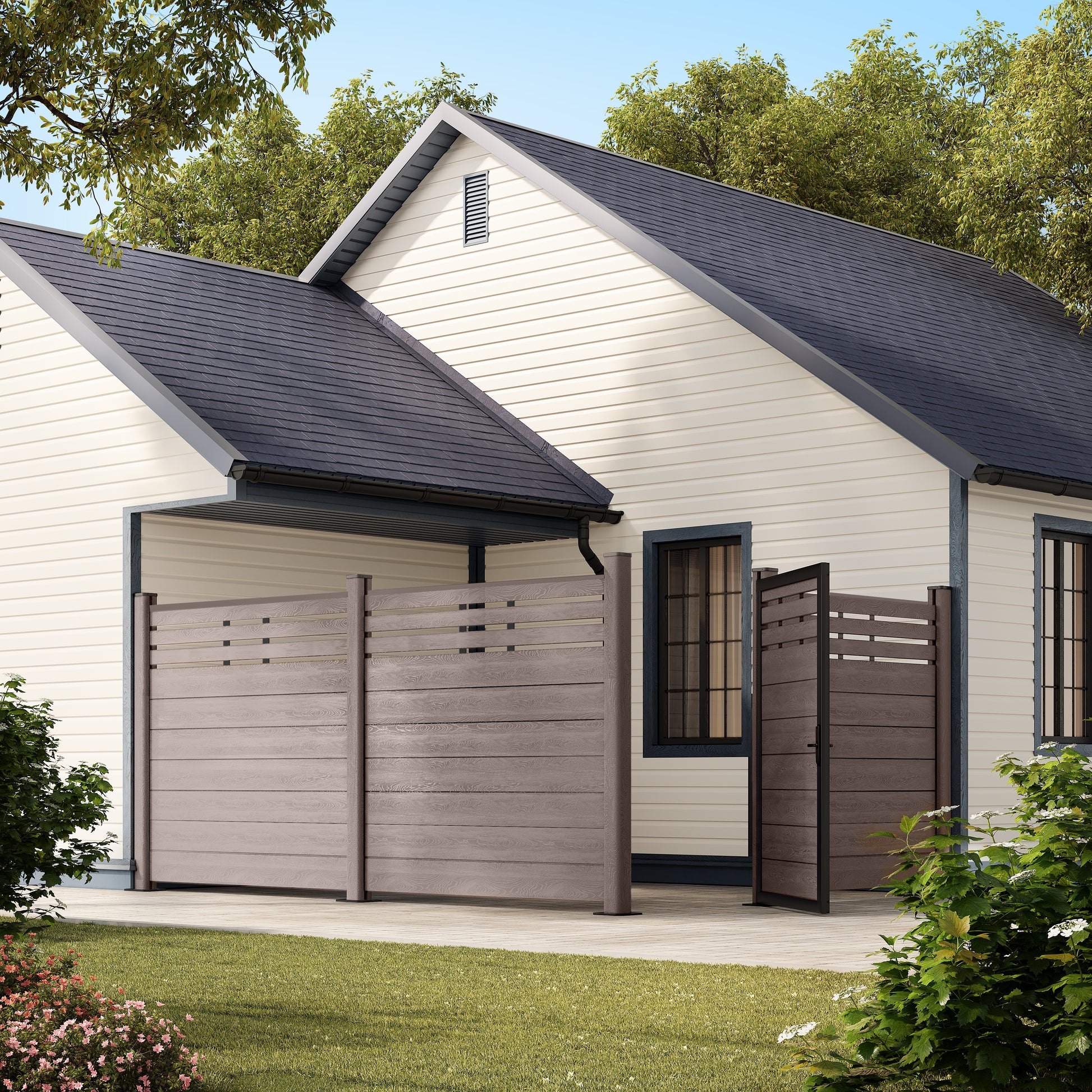 A standard panel set without a screen includes ten Deluxe composite fence boards. These boards feature a tongue and grooved design that assembles easily to create a 6ft high panel. The boards are dual-sided, offering a deep, embossed woodgrain texture on one side and a brushed effect on the other, allowing you to choose your preferred finish.